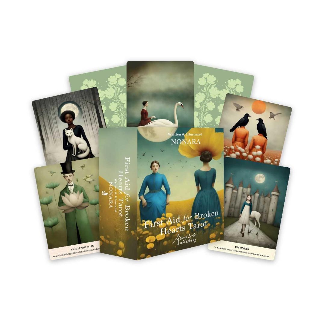 First Aid for Broken Hearts Tarot offers solace and guidance to those navigating heartbreak, much like a first aid kit for emotional wounds. This compassionate deck follows the Rider-Waite-Smith structure, blending surreal dreamscapes with contemporary perspectives. Its seventy-eight cards feature symbolic imagery and keywords for immediate comfort, with deeper meanings in the guidebook. Whether new or experienced, users find healing, courage, and hope to embrace uncertainty, take risks, and begin anew. This deck is a sanctuary of renewal amid the turmoil of heartbreak, providing inspiration and visual affirmation.