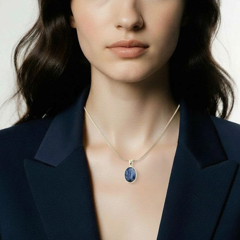 Channel clarity, harmony, and pure energetic flow with this elegant Kyanite oval shaped 925 sterling silver pendant. Known for its striking blue striations and naturally high vibration, Kyanite is a powerful stone of alignment — instantly realigning your energy field and restoring balance to the mind, body, and spirit.