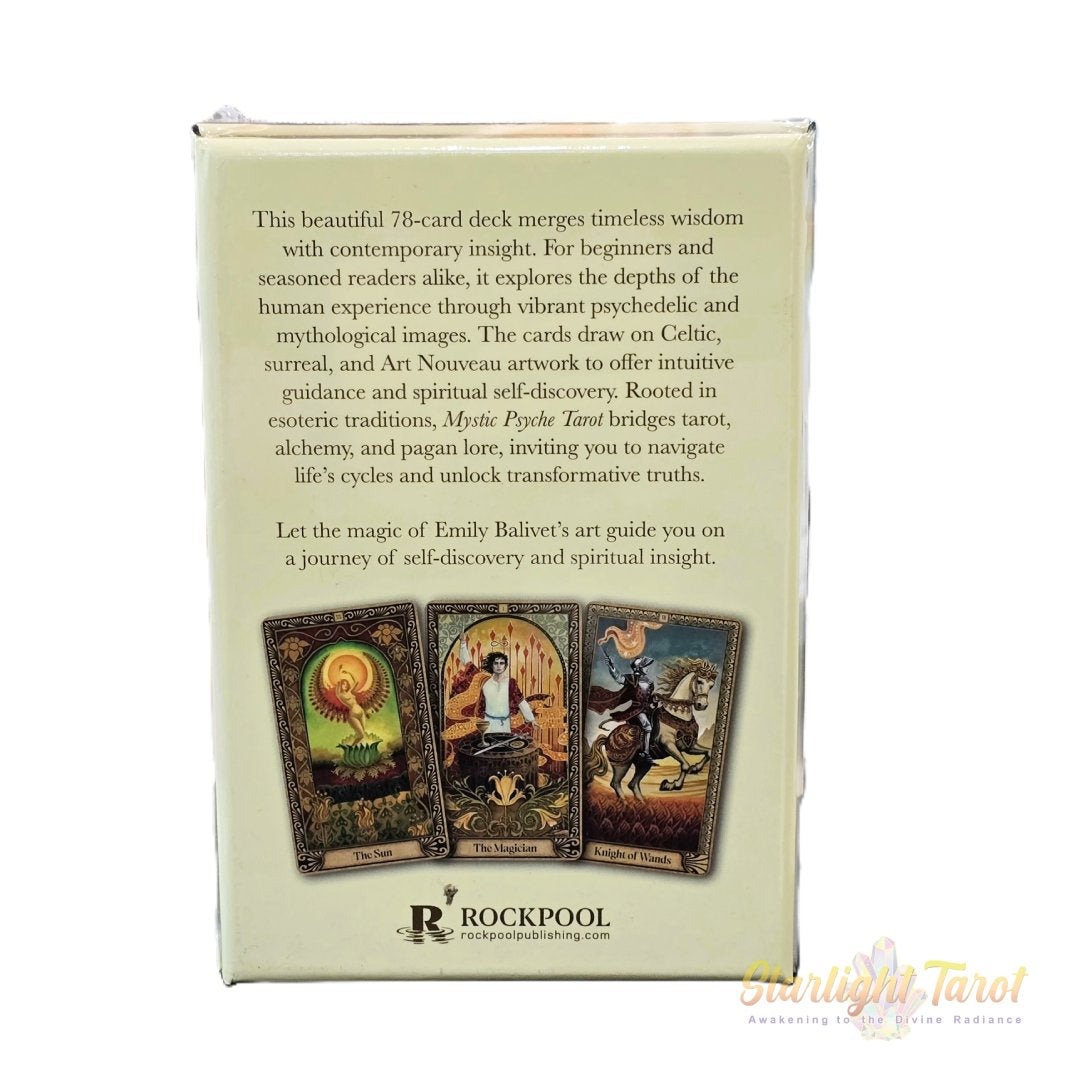Step into the enchanting world of the Mystic Psyche Tarot, a stunning 78-card deck that blends ancient wisdom with modern insight. With vivid, mythological, and psychedelic imagery by Emily Balivet, this deck draws from Celtic, surreal and Art Nouveau influences to reveal universal archetypes and offer intuitive guidance. Designed for both novices and seasoned readers, it bridges tarot, alchemy and pagan lore to support personal transformation. Each card opens a portal to self-discovery, helping you navigate life's mysteries and connect with deeper truths through bold, otherworldly visions rooted in esoteric traditions.