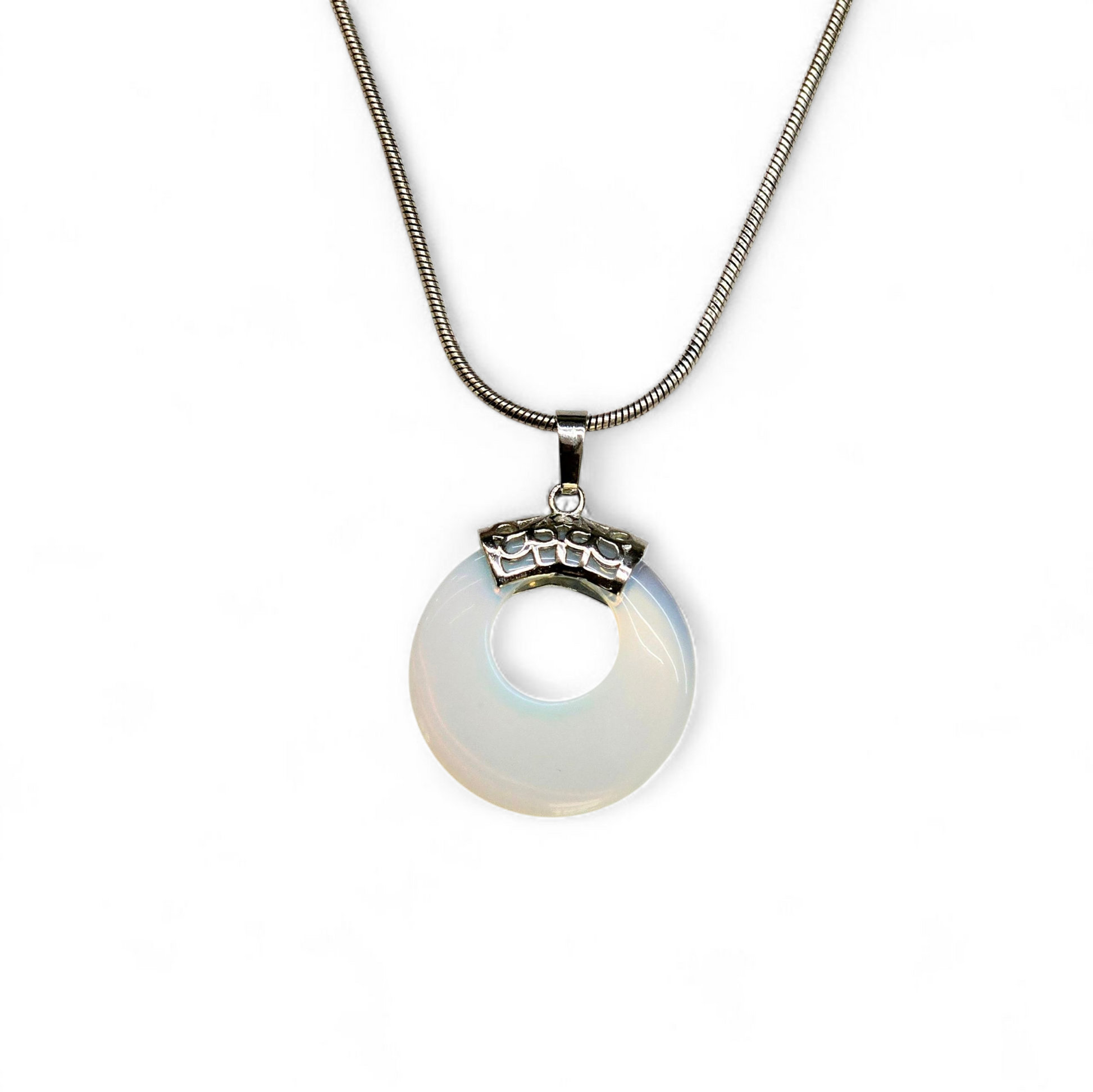 Illuminate your aura with the soft, glowing energy of this Circular Opalite Pendant. Known for its ethereal, moonlit shimmer, Opalite embodies tranquility, emotional healing, and gentle spiritual awakening. Its round, circular form symbolizes wholeness, unity, and the continuous flow of energy — making this pendant a perfect companion for peace, balance, and renewal.