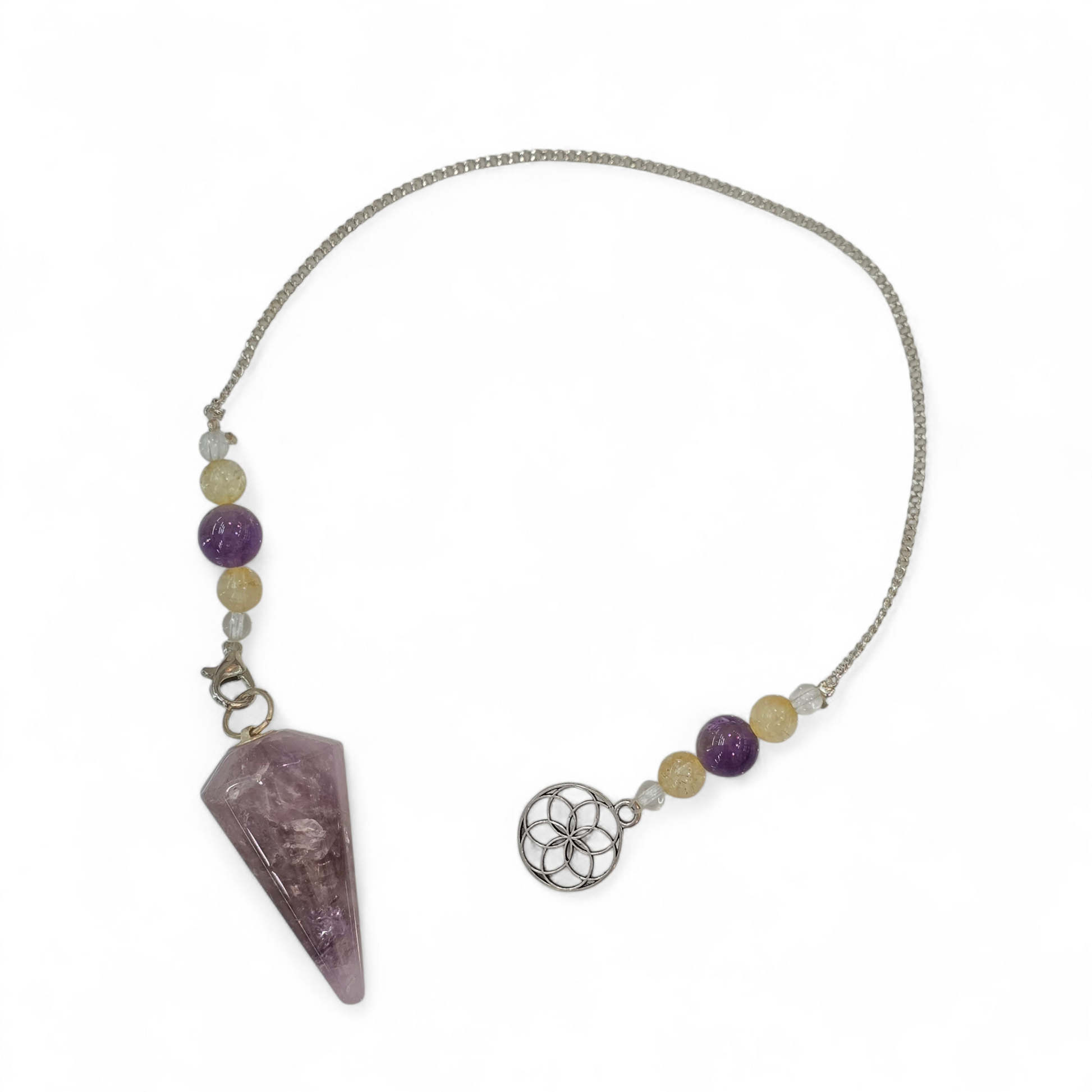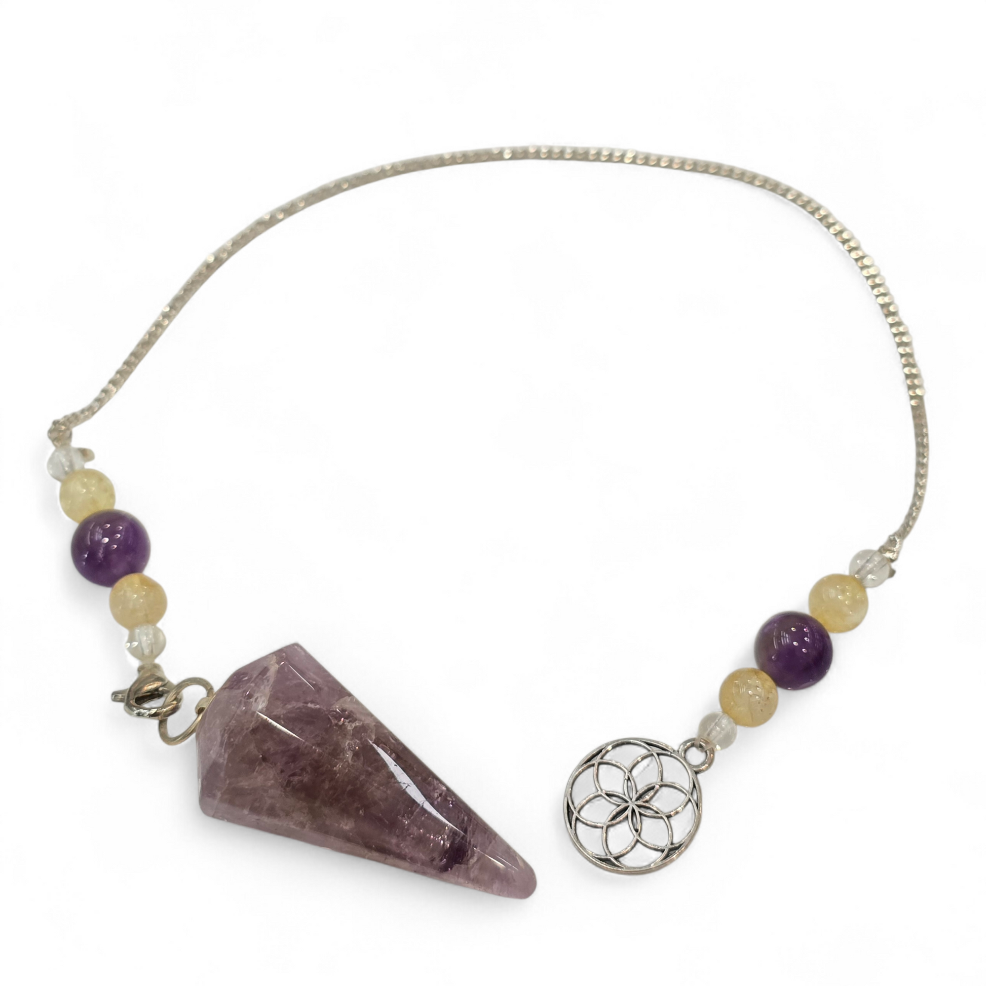 Pendulum combined with clear quartz, citrine and amethyst beads.