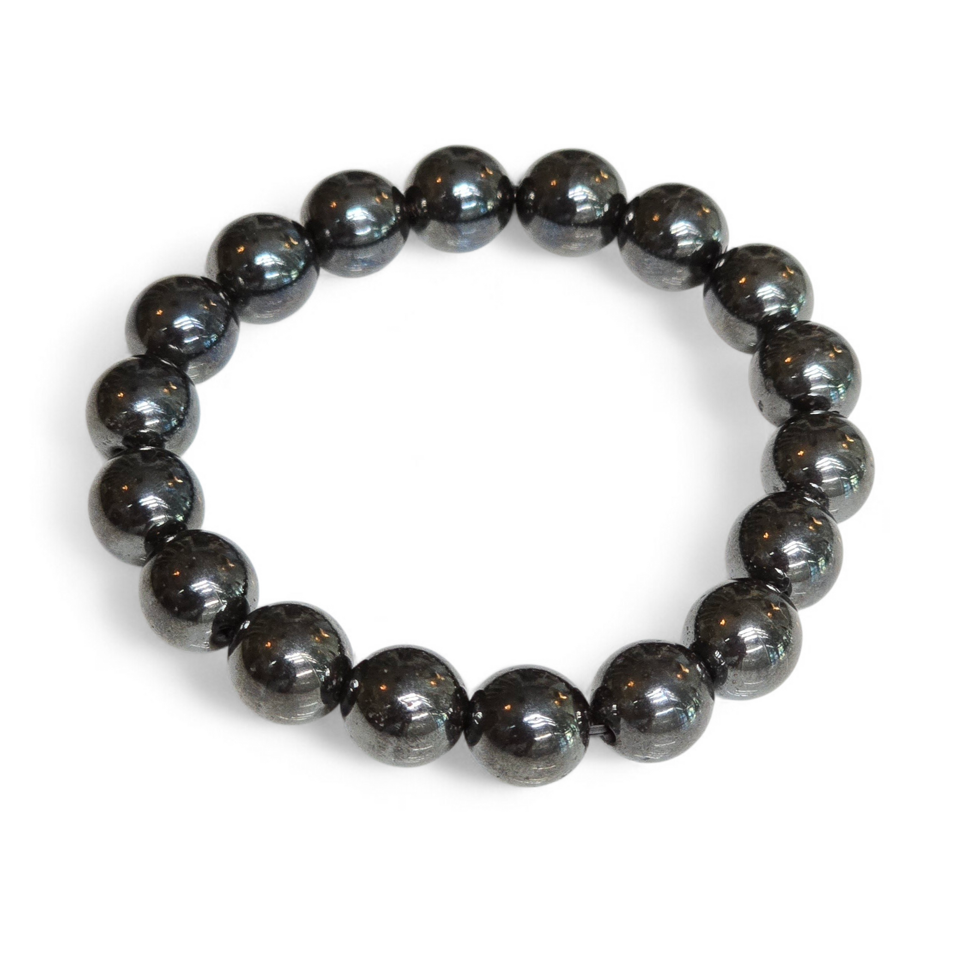 The Iron Shield: Magnetic Hematite Bead Bracelet (10mm Beads · 17cm)